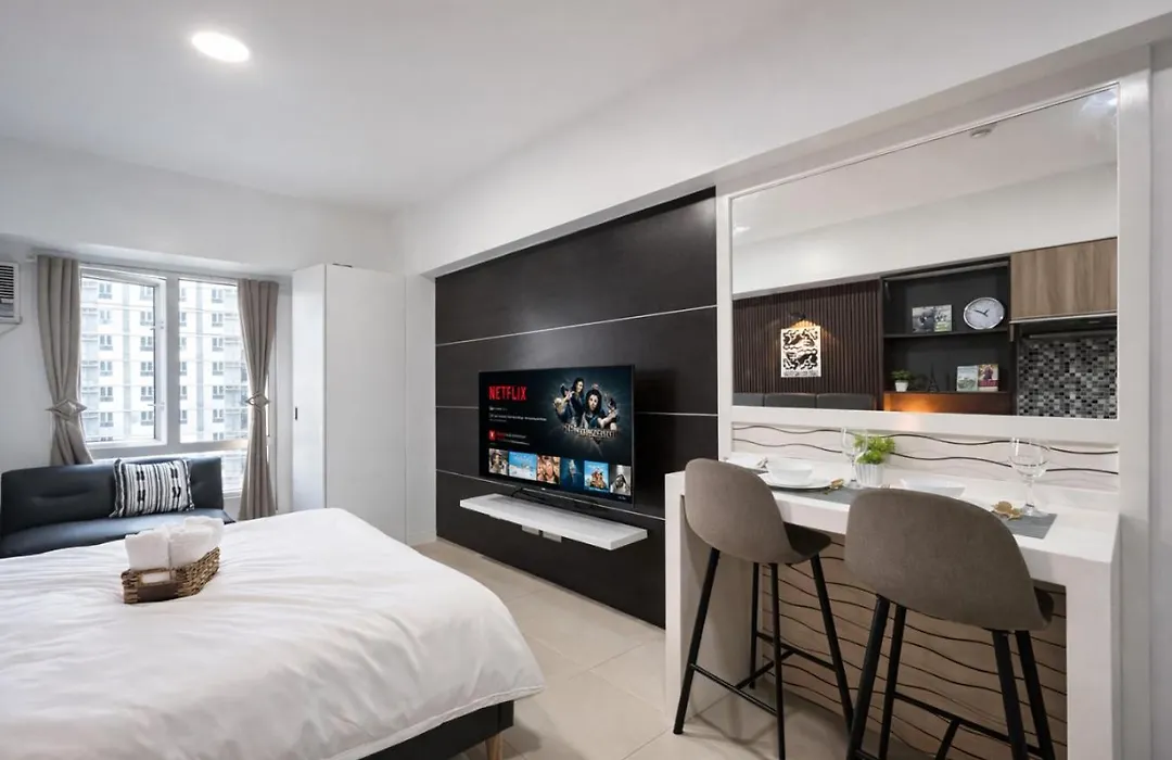 This apartment is equipped with a fully furnished kitchen, including a fridge, to ensure your comfort. Noirwood Studio It Park Pool Fast Wifi is right near the nearest bus stop to Ayala Mall.